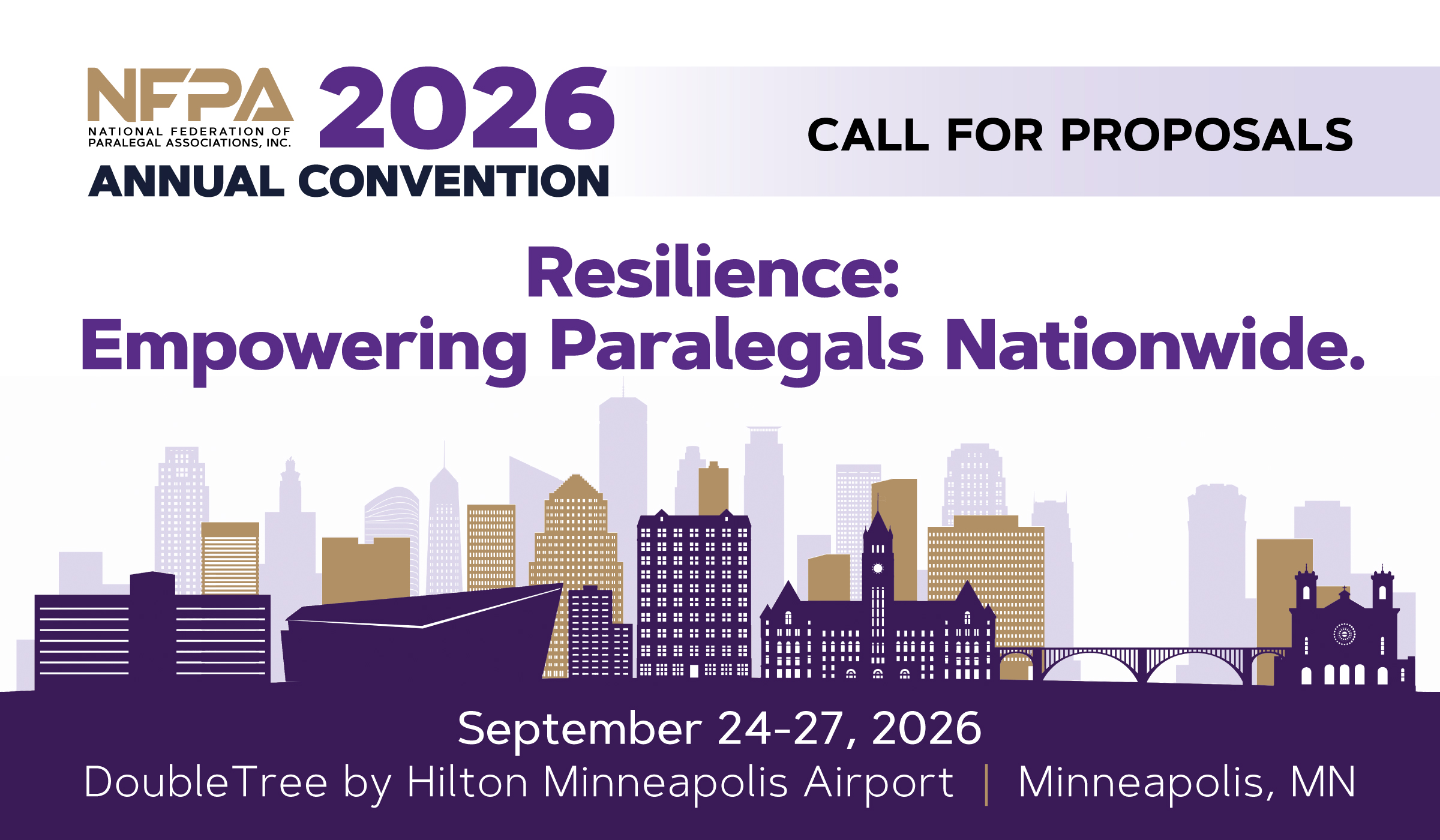 The NFPA 2026 Annual Convention provides invaluable networking opportunities and practical educational sessions to help paralegal professionals increase their skills. NFPA is seeking Paralegals, Attorneys, Judges, Accountants, and any Legal Professionals to present 1 hour CLE presentations at the 2026 Convention.